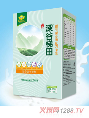 1.金盾愛嬰深谷梯田益生菌小米配方米乳,具有百合蓮子、果蔬繽紛、核桃紅棗、淮山薏米四個配方,分為罐裝和盒裝兩種,口味齊全,營養豐富,